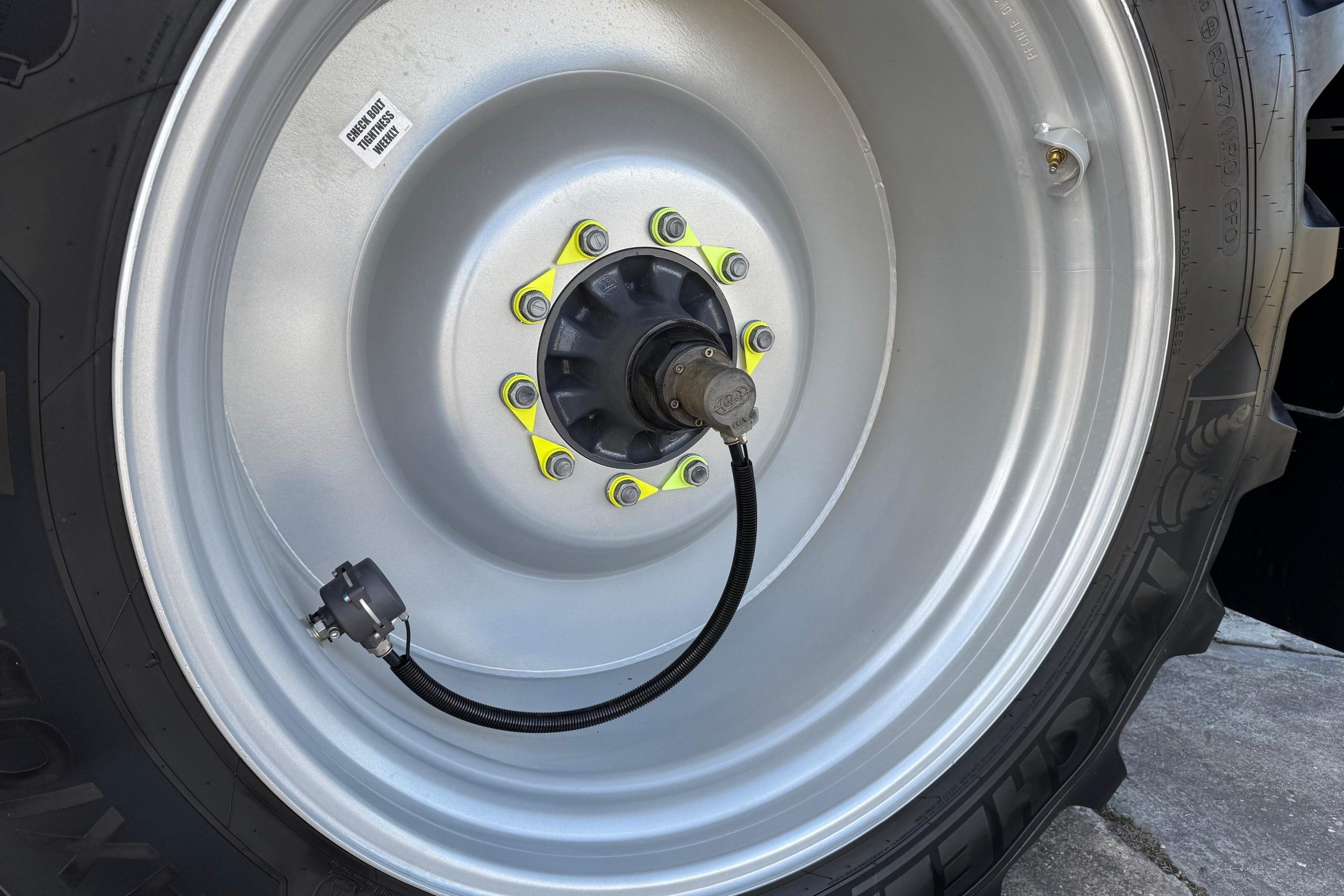 Available on our Sentry models, Central Tyre Inflation allows the operator to vary tyre pressures on the move between the road and field, allowing safe road travel while fully laden, and low in field pressures for minimum ground pressures. Air is transferred through the stub axle, with no exposed drop hoses.